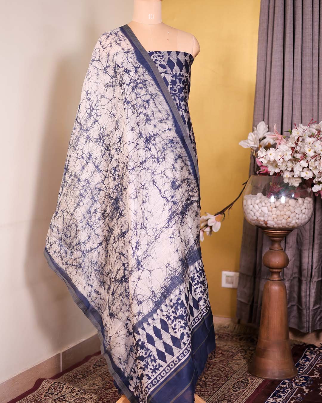 | Blue Batik Print Suit with Coordinated Dupatta remove | Shimmer Linen Printed Suit with French Knot Neckline remove | Maheshwari Silk Suit with Mirror & Thread-Embroidered Neckline remove | Maheshwari Silk Printed Suit with Banarasi Border – Blue Base remove | Green Summer Silk Suit with Tone-on-Tone Appliqué remove | Yellow Maheshwari Silk Block Printed Suit with Kantha Dupatta remove | |