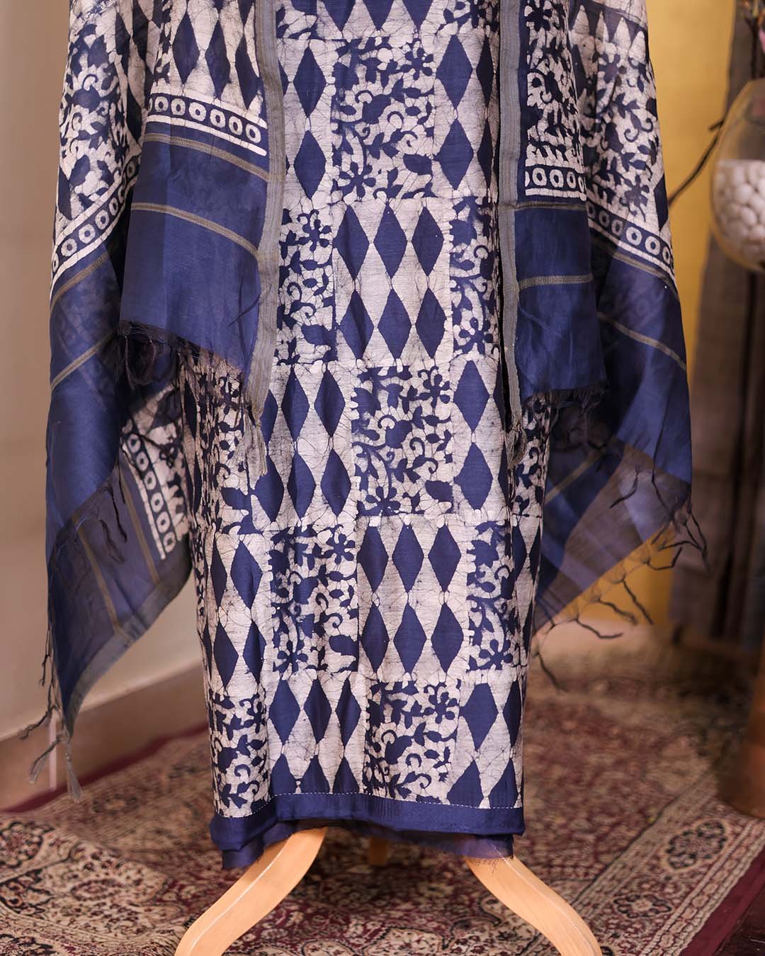 Blue Batik Print Suit with Coordinated Dupatta