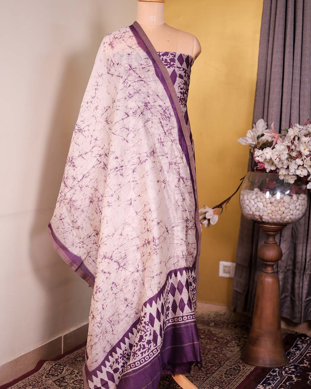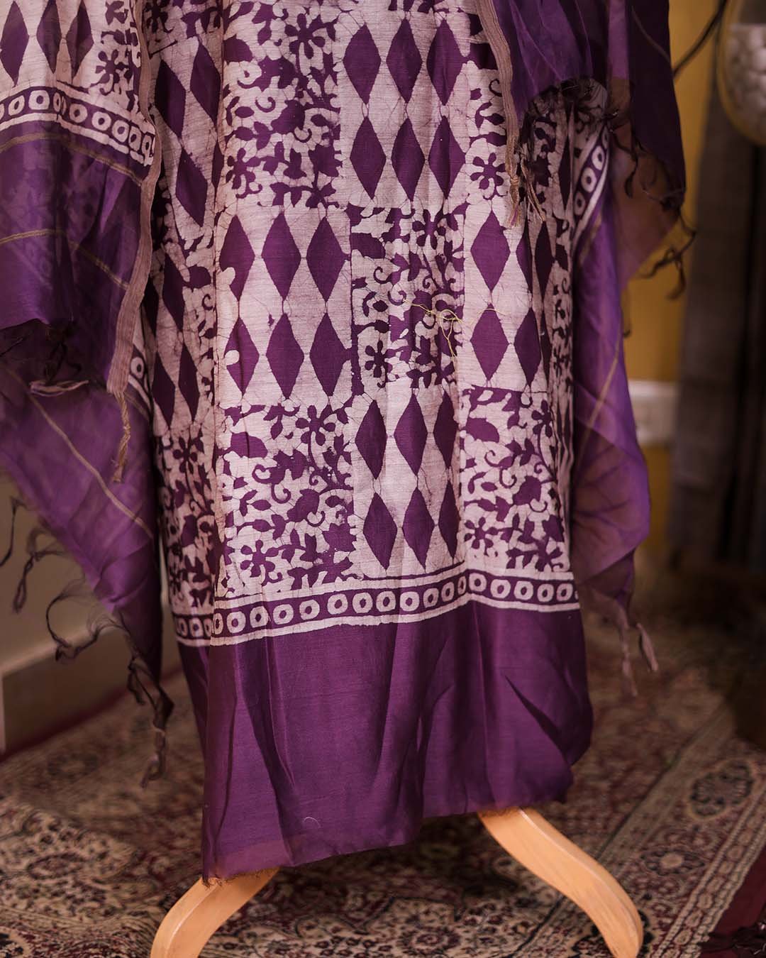 The dupatta carries matching batik print, creating a cohesive and balanced ensemble. The lower is provided in a coordinated fabric, completing the set for a ready-to-stitch outfit.