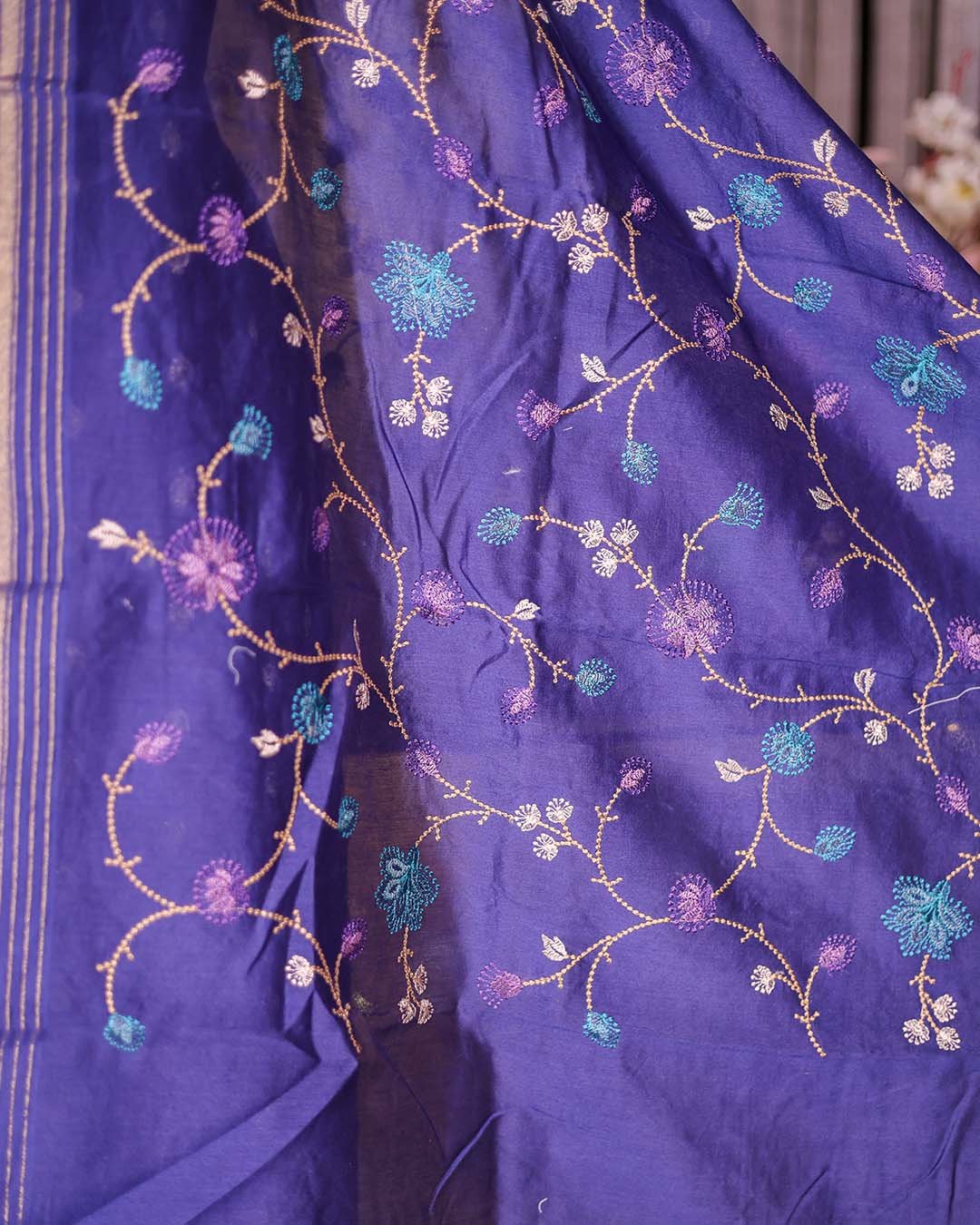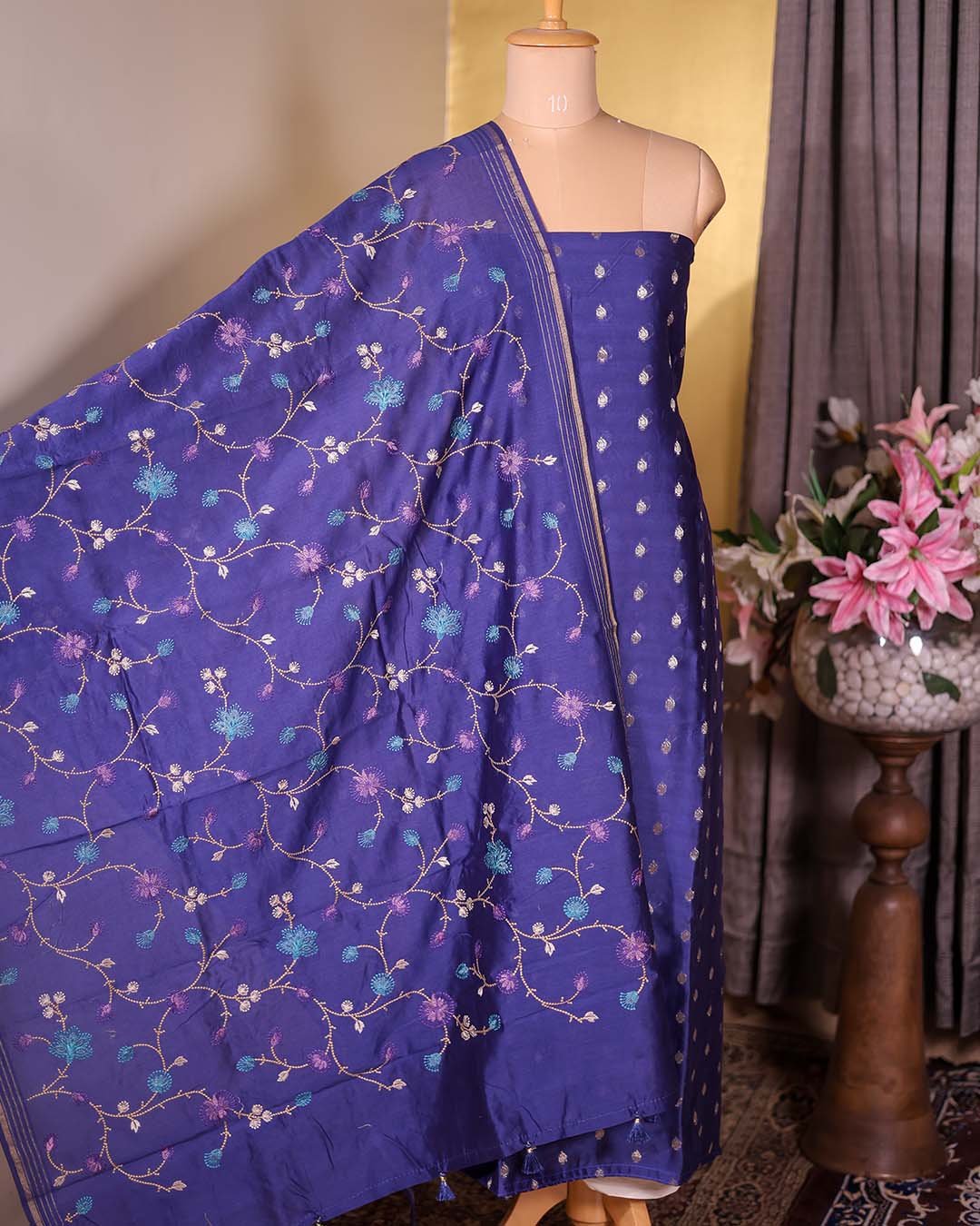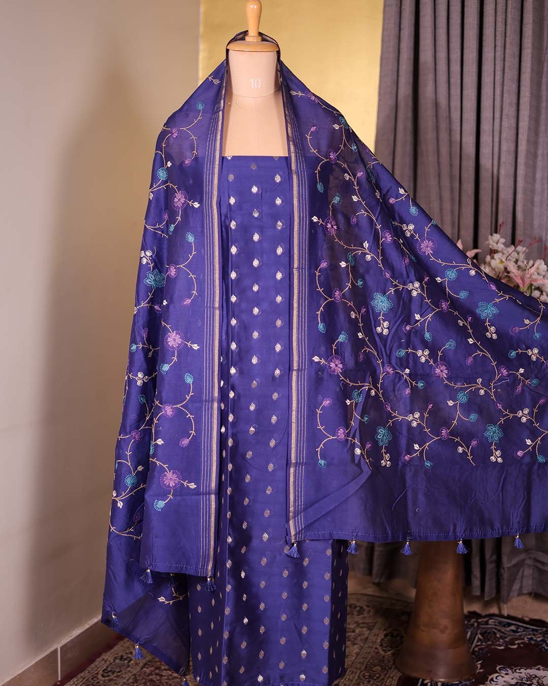 Blue Maheshwari Silk Suit with Banarasi Booties & Embroidered Dupatta