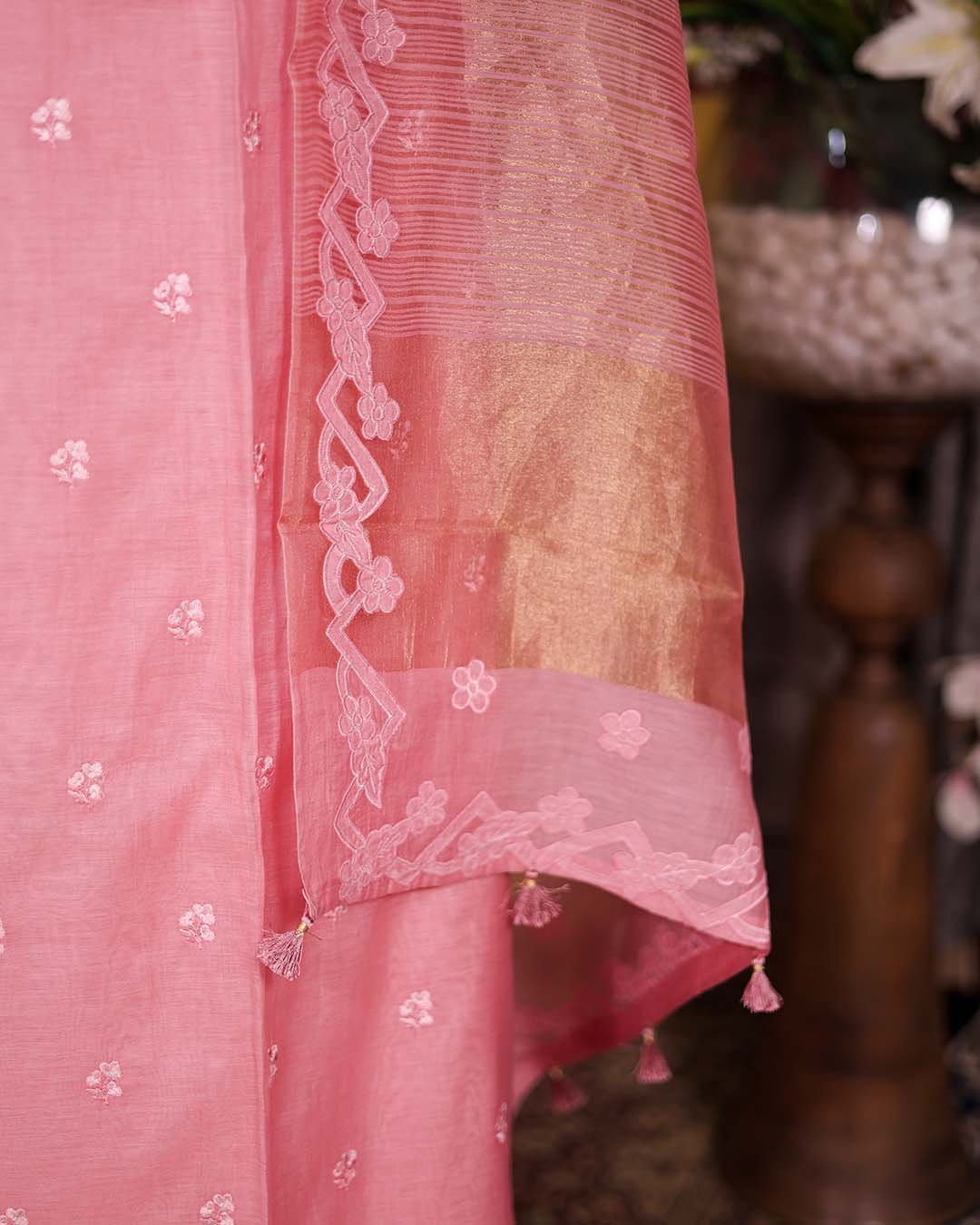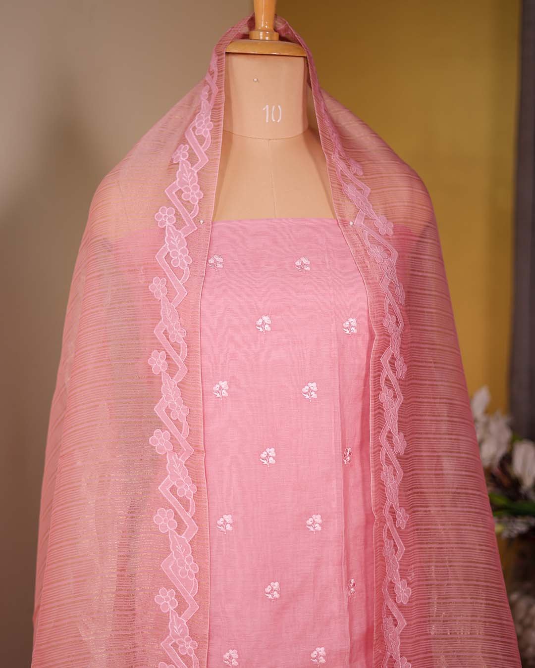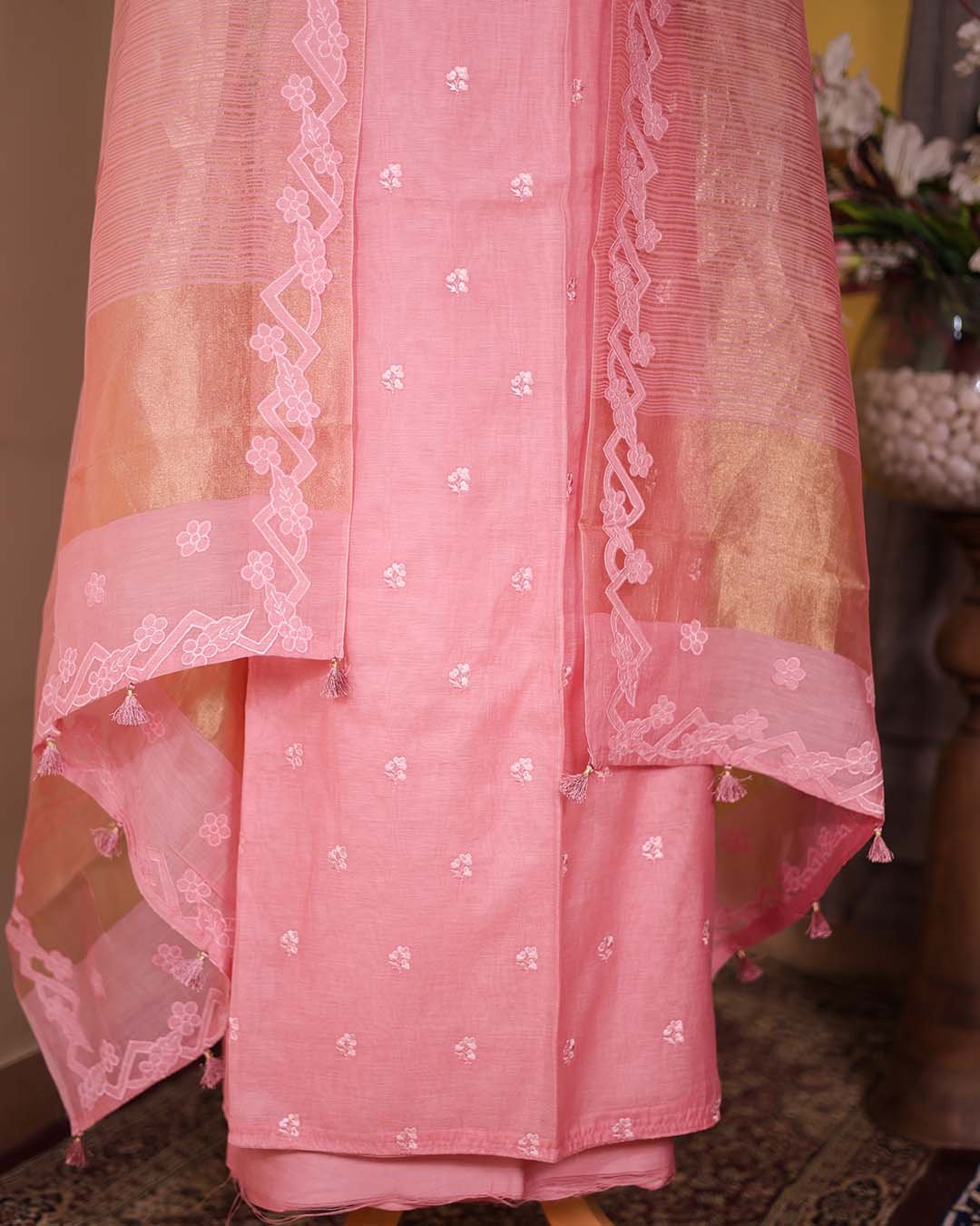 Pink Mal Suit with Thread Bootis & Zari Striped Dupatta