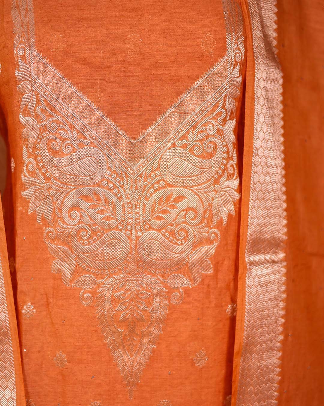 Rust Summer Silk Suit with Banarasi Weaving & Muqaish Work
