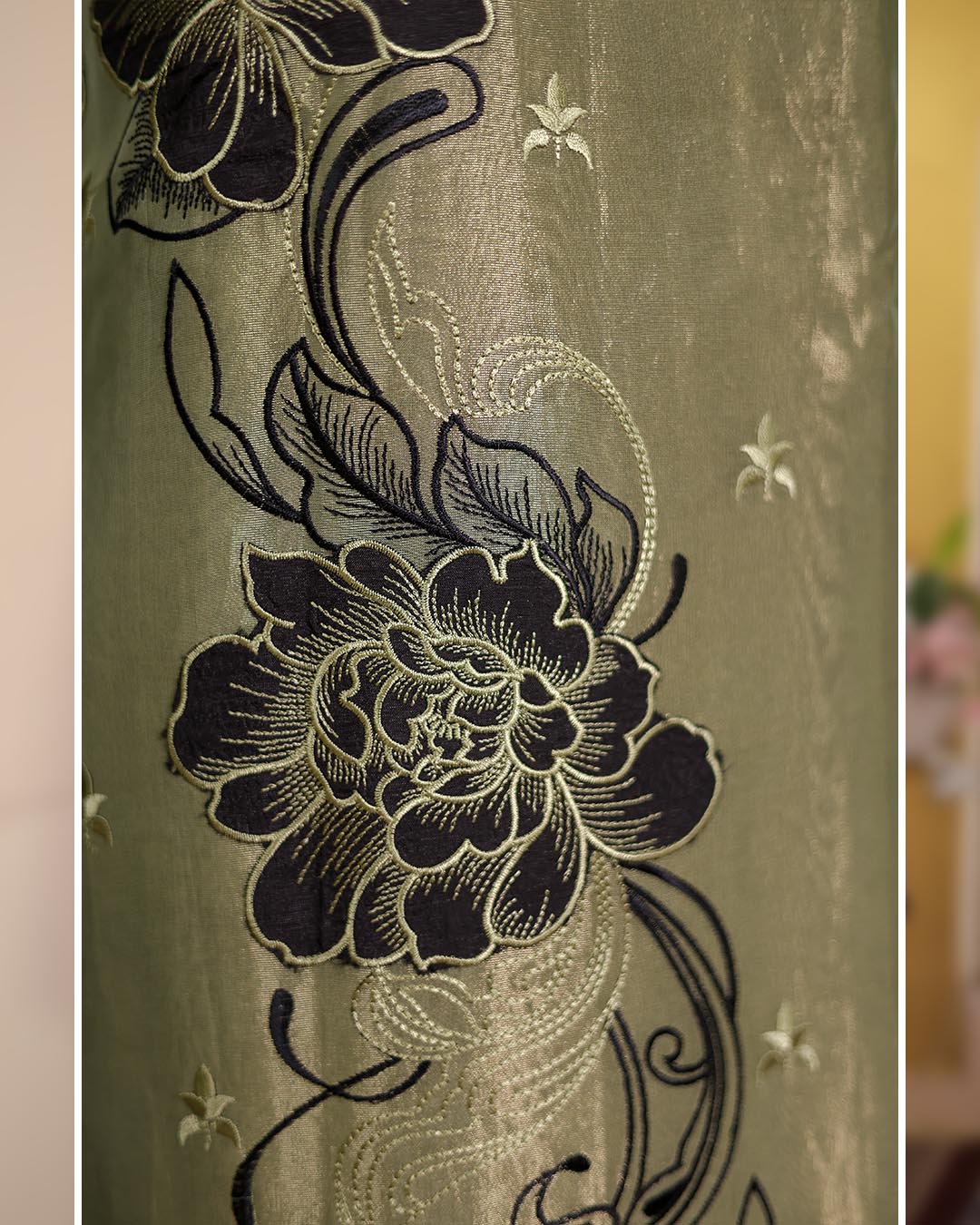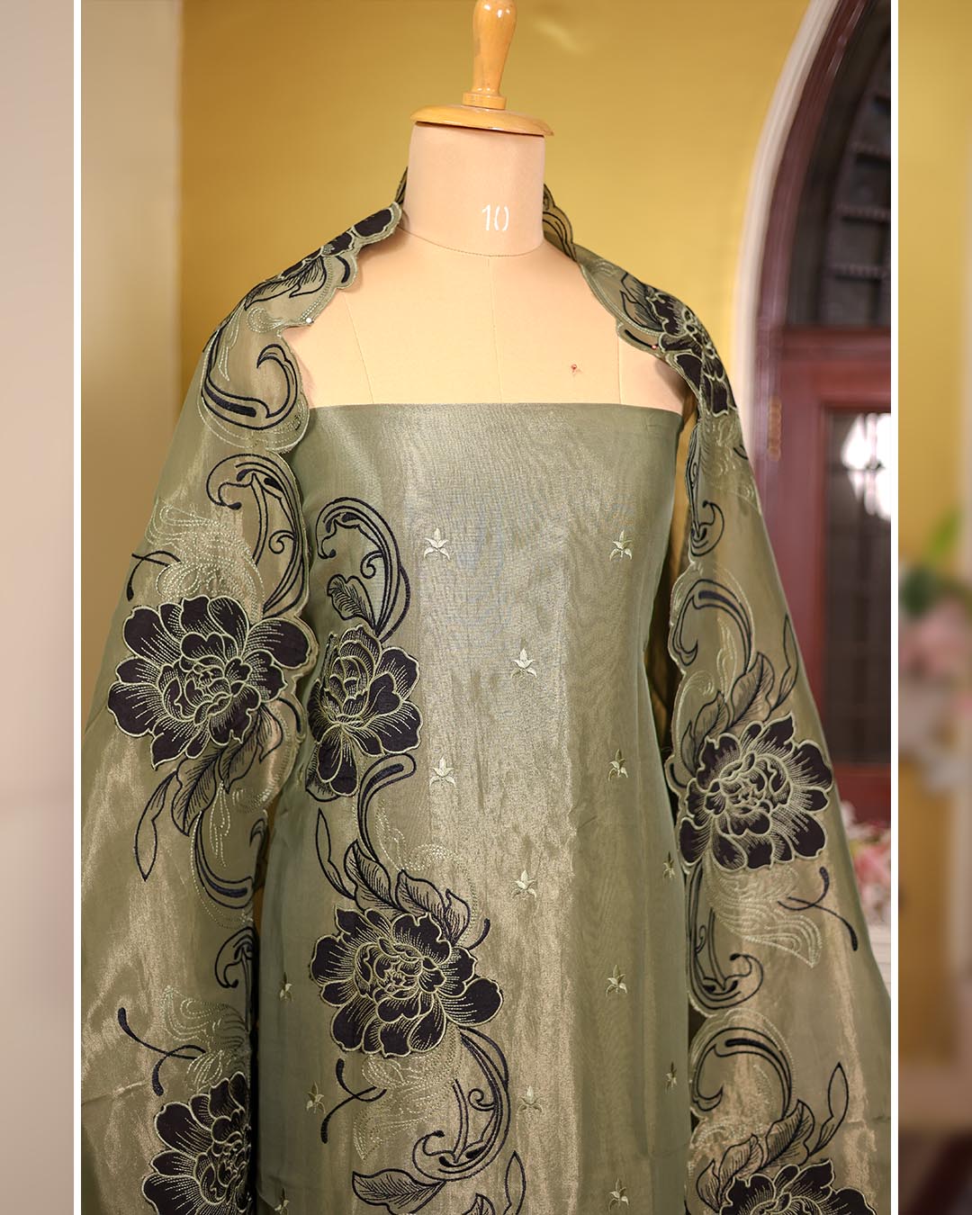 Shimmer Tissue Suit with Appliqué & Thread Embroidery - GREEN
