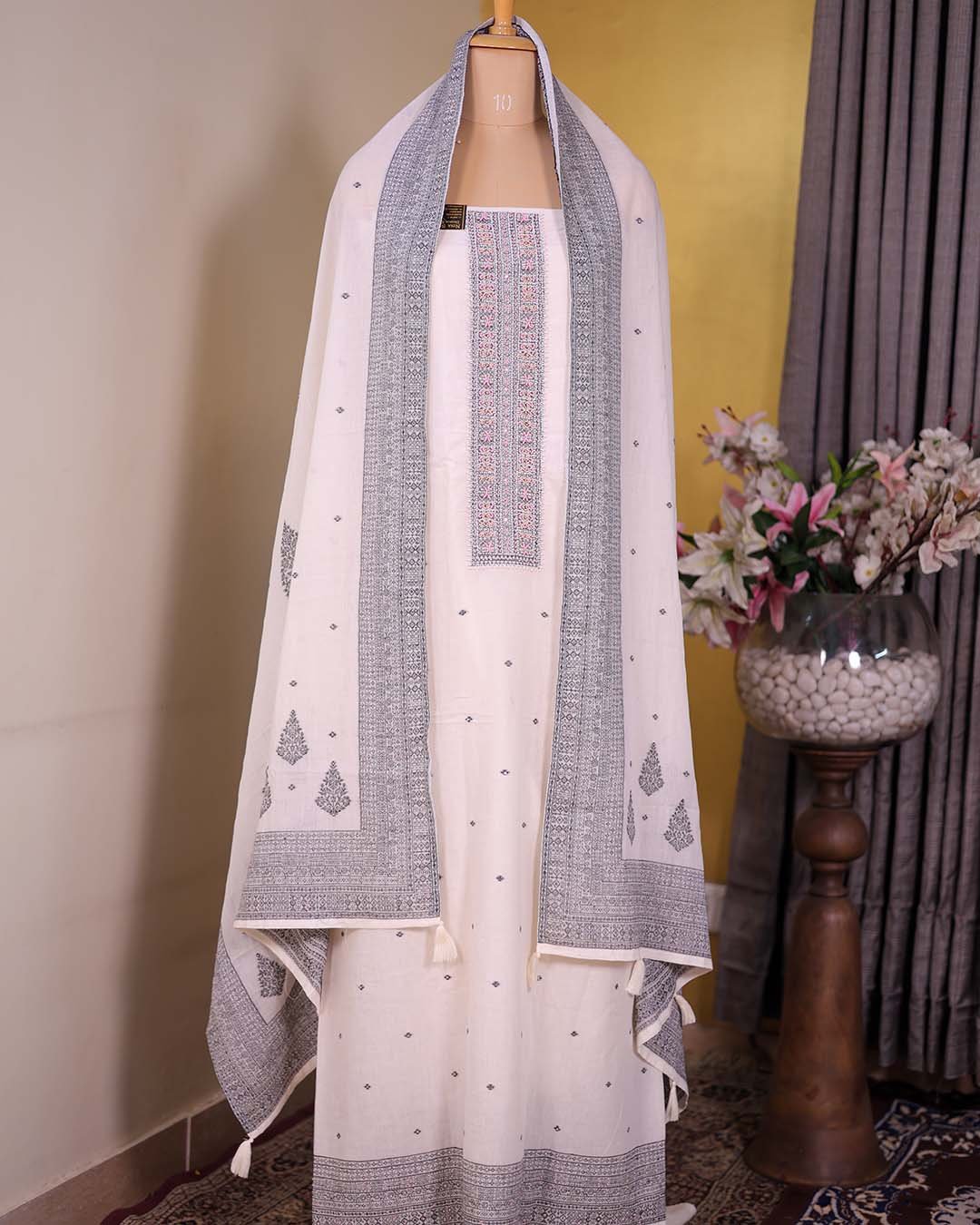 - Dupatta: Cotton with Woven Booties