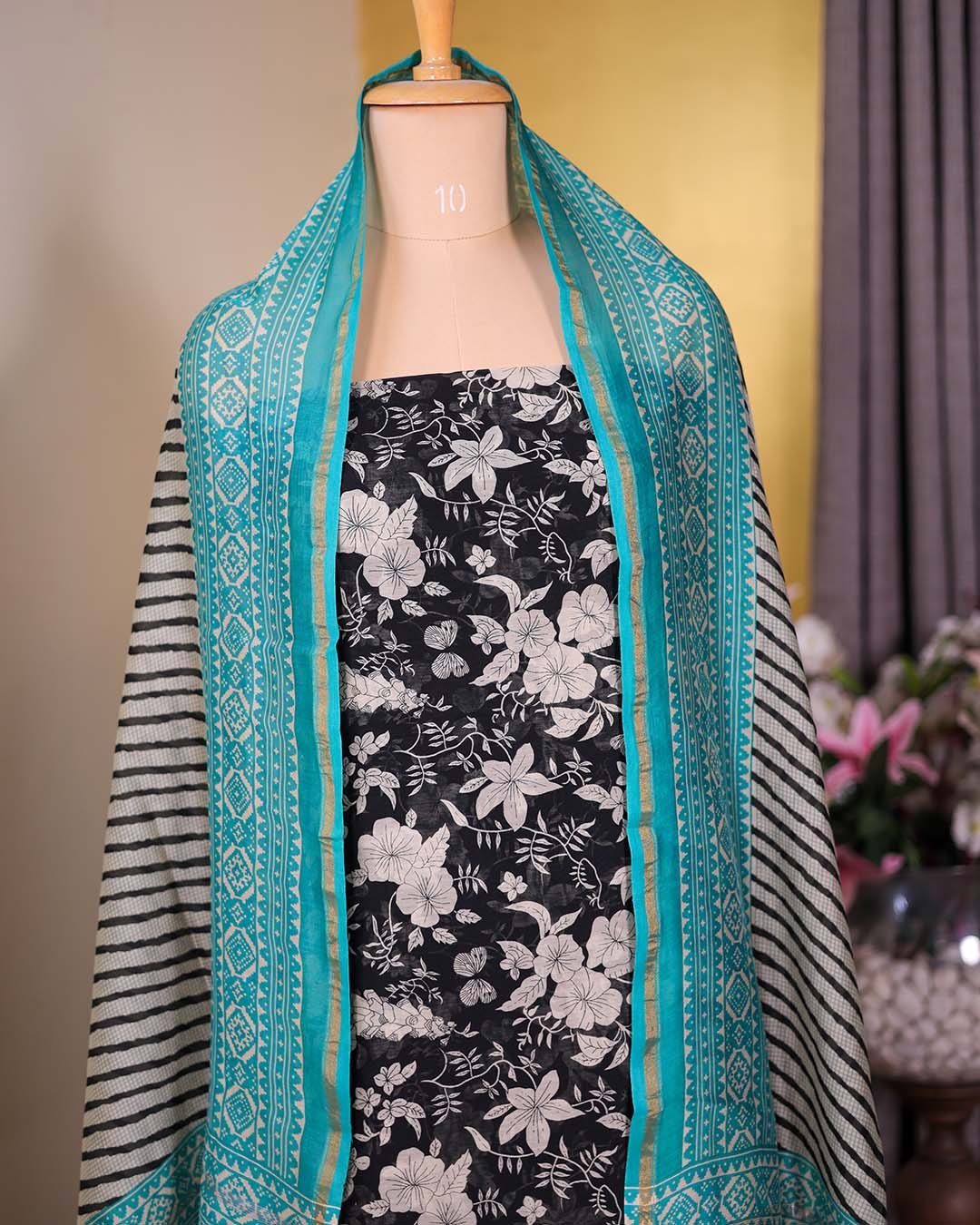 Rama Green Maheshwari Silk Floral Suit with Leheriya Dupatta