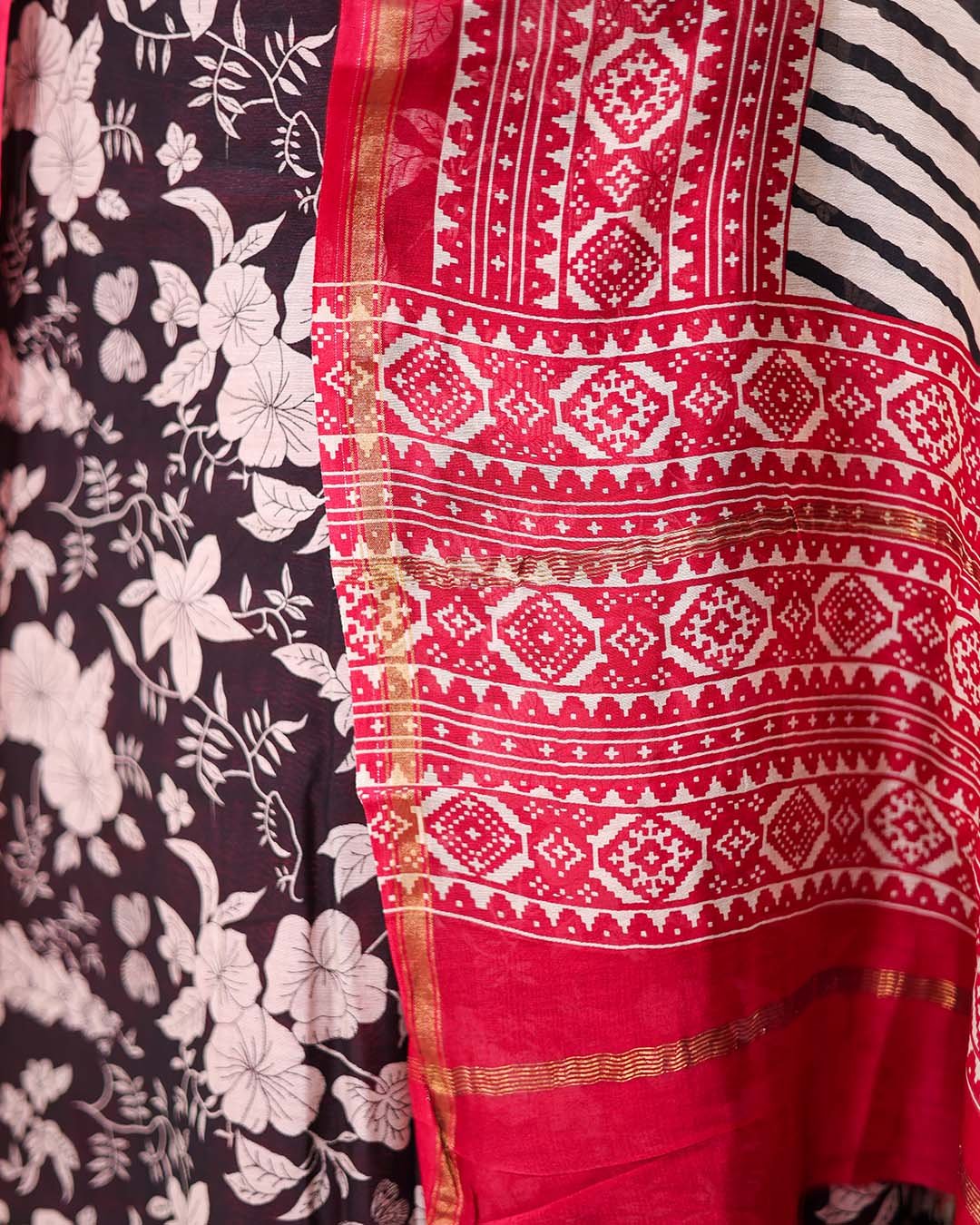 Red Maheshwari Silk Floral Suit with Leheriya Dupatta