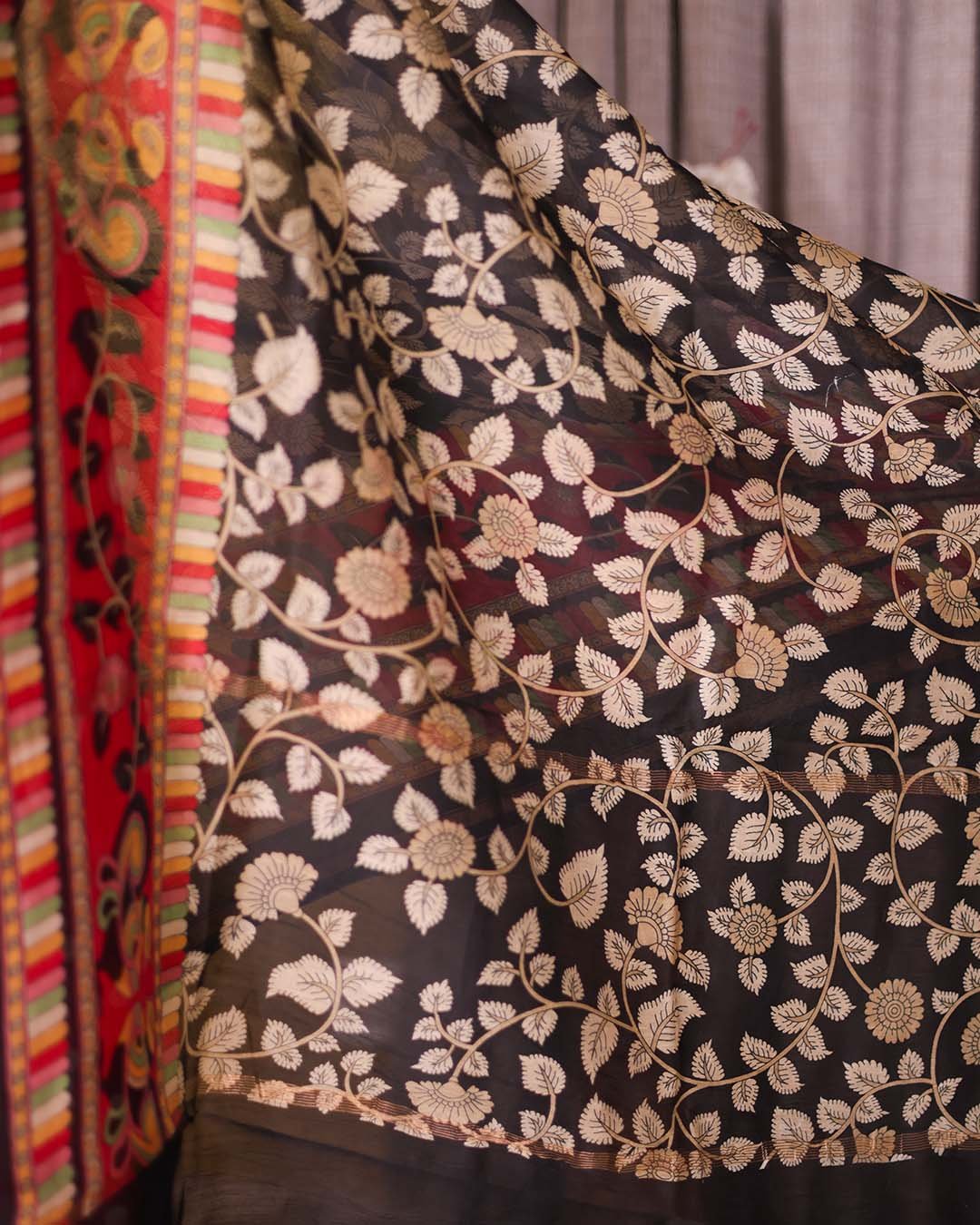 Dupatta: Printed Fabric with Leaf Print and Border
