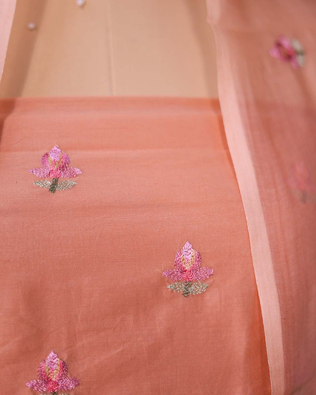 Peach Mal Chanderi Suit with Floral Bootis & Embroidered Hemline
