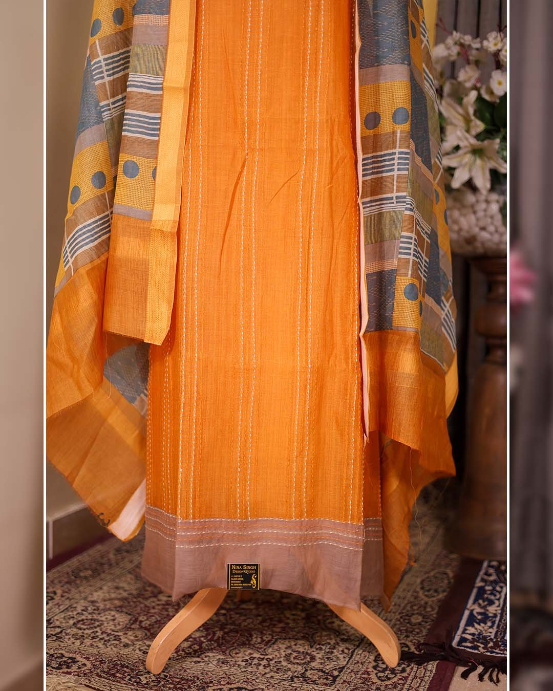 • Handcrafted Kantha embroidery in vertical stripes